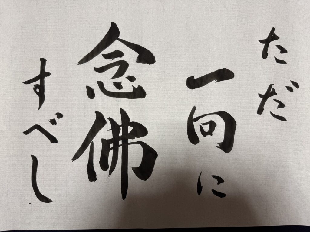法然上人が御往生される2日前にお遺しくださった御遺訓「一枚起請文」より「ただ一向に念仏すべし」を今月のお言葉にしました。法然上人は最後の最後に、ただひたすらに念仏(修行)をしなさいと、私達にお遺しくださいました。仏になる為の修行は沢山あります。苦しい・辛い・難しい・・・修行も有難いみ教えです。でも、中々続けていくことが難しいものです。そんな私達の為に、法然上人はお釈迦様の沢山のみ教えの中から探して選んでくださったのが、お念仏です。生涯続けていく事ができる修行で、確実に仏になることができる教えに出会えた事が幸せです。